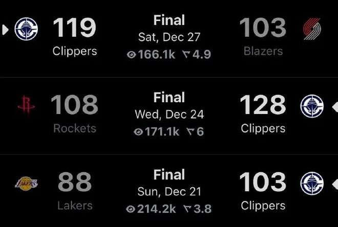 快船不沉了,浮起来了,正开足马力往前冲,目前以9胜21负位列西部第13名,落后第十的开拓者2.5个胜场。