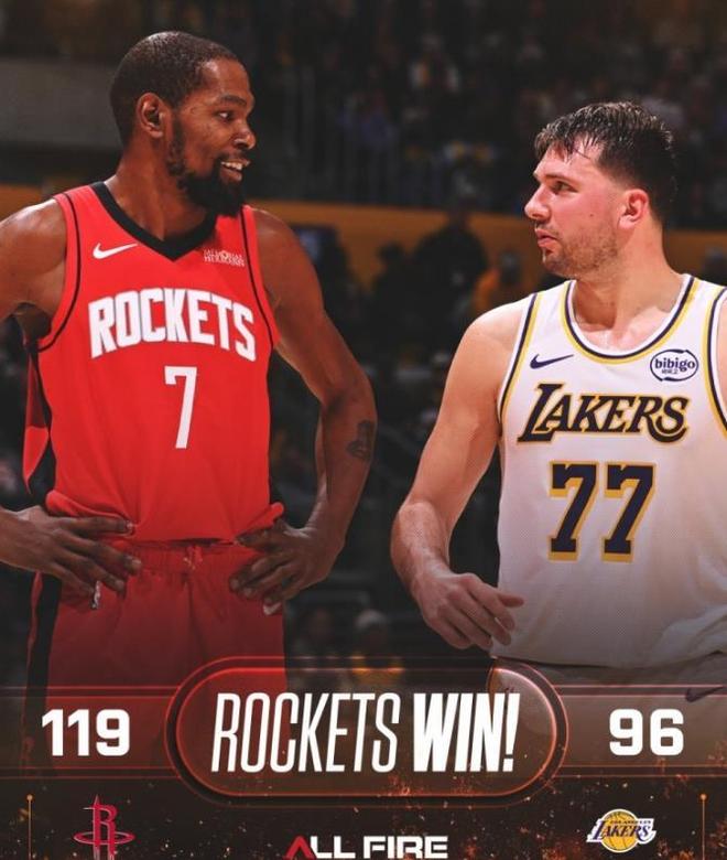 杜兰特25+9火箭大胜送湖人3连败 东契奇25+7詹姆斯18+5